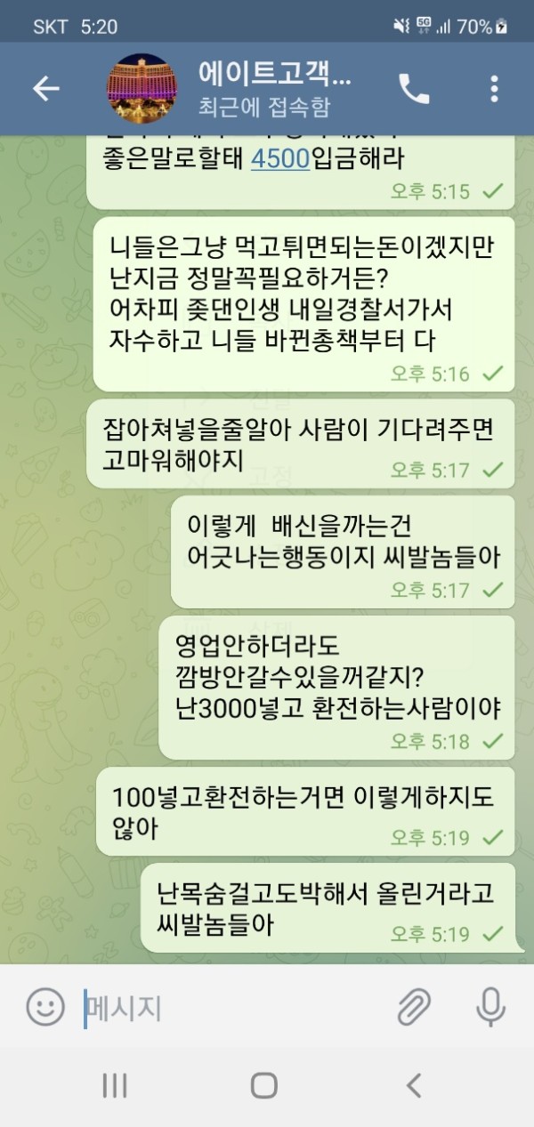 에이트관계자 연락처 아시는분 2021-11-29 19:58:20 에이트잡자 조회 346 | 추천 0 0 에이트 먹튀 최고금액이 아닐까싶습니다,4500만원 먹튀당했습니다, 화가 치밀어 오릅니다, 실장 새끼며 아무도 연락안받습니다,,,, 도와주세요 0 0