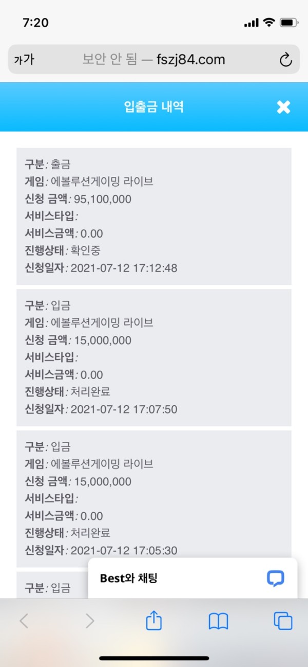 계속 대화를 시도 했는데 아이디는 안짜르더군요 지인들 다 동원해서 원금만 7500만원 받고 2010만원은 이긴 돈인데 못받았습니다.인증합니다 날짜를 잘 보시면 12일날 환전신청을 했는데 어제 날짜로 환전완료가 떴지만 금액은 7500만원만 입금되었습니다