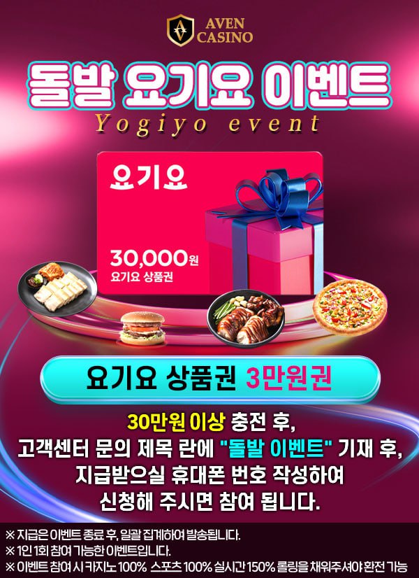 아벤 카지노 돌발 요기요 이벤트 2023-10-22 17:59:34