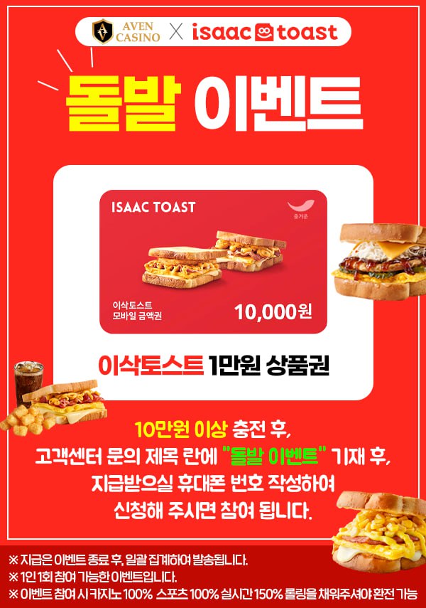 아벤 카지노 돌발 이삭토스트 이벤트 2023-10-25 03:00:30