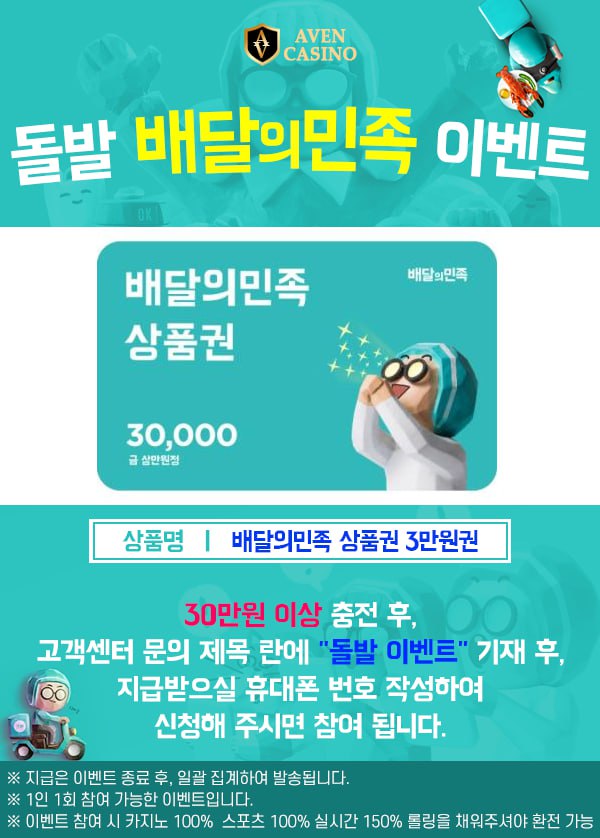 아벤 카지노 돌발 배달의민족 이벤트 2023-10-25 19:00:12