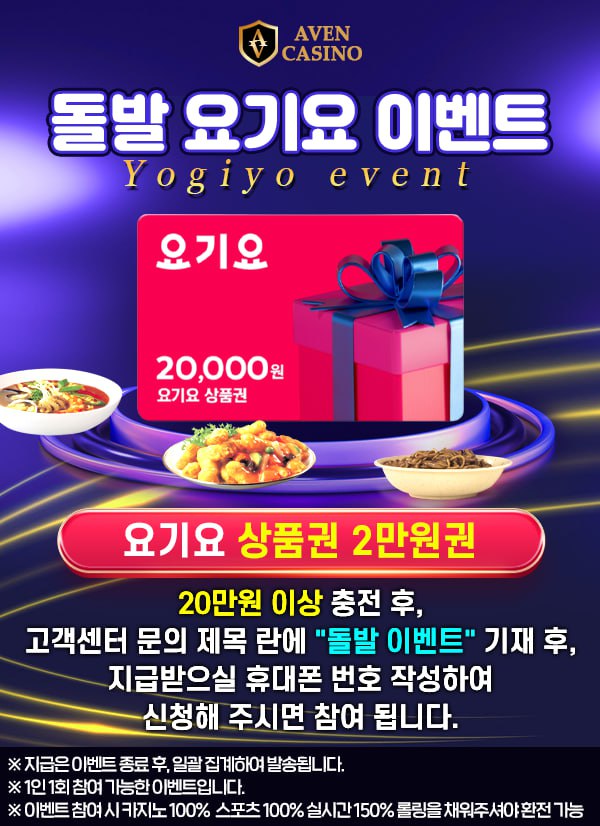 아벤 카지노 돌발 요기요 이벤트 2023-10-26 17:59:14