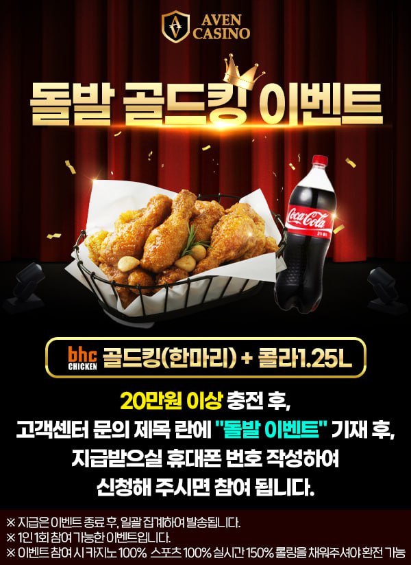 아벤 카지노 돌발 치킨 이벤트 2023-10-30 19:01:06