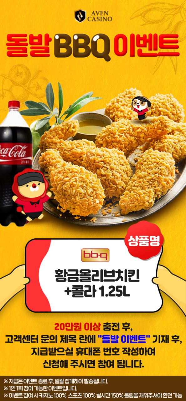 아벤 카지노 돌발 치킨 이벤트 2023-11-03 17:59:51