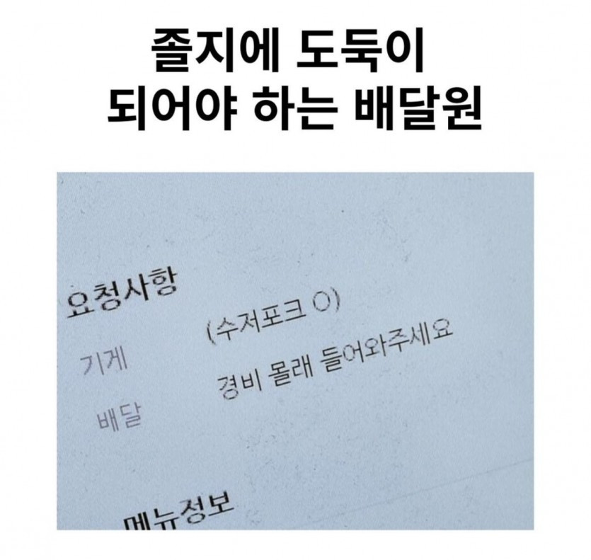 경비몰래 ㅋㅋㅋㅋ 배달비 업해야죠 ㅋㅋㅋㅋ