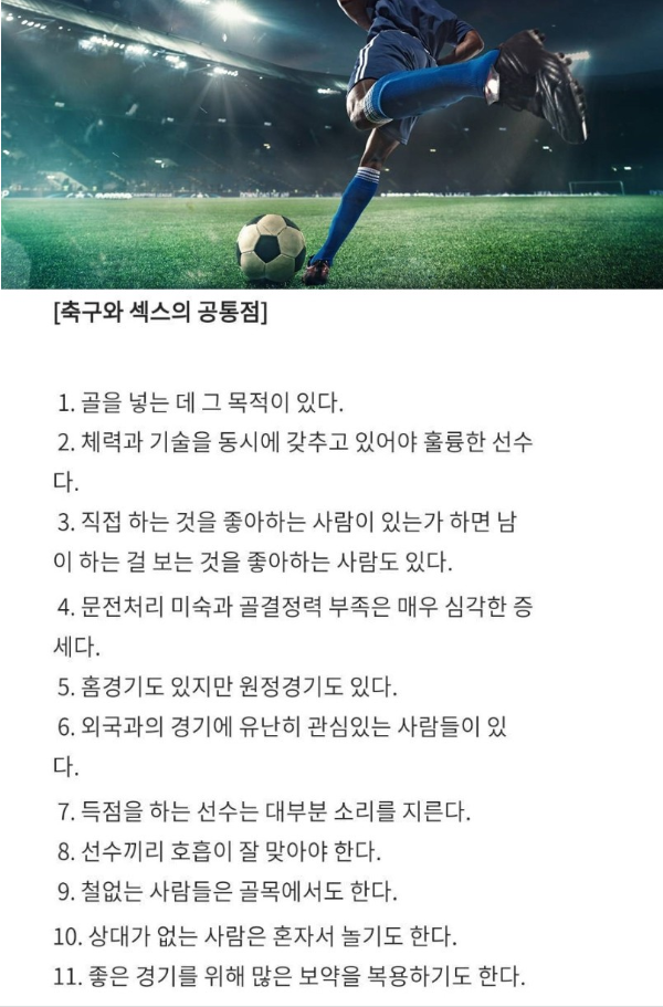 축구와 섹스의 공톰점..ㄷㄷ