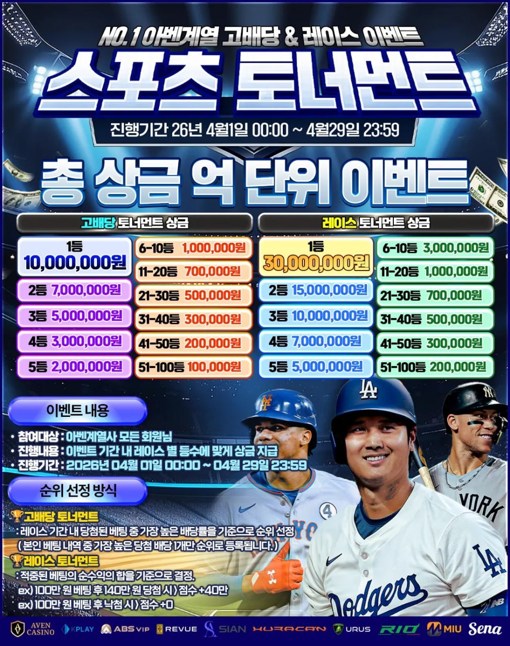 " NO.1 아벤계열 스포츠 토너먼트 EVENT! 안내 " 2026-04-01 00:00:27