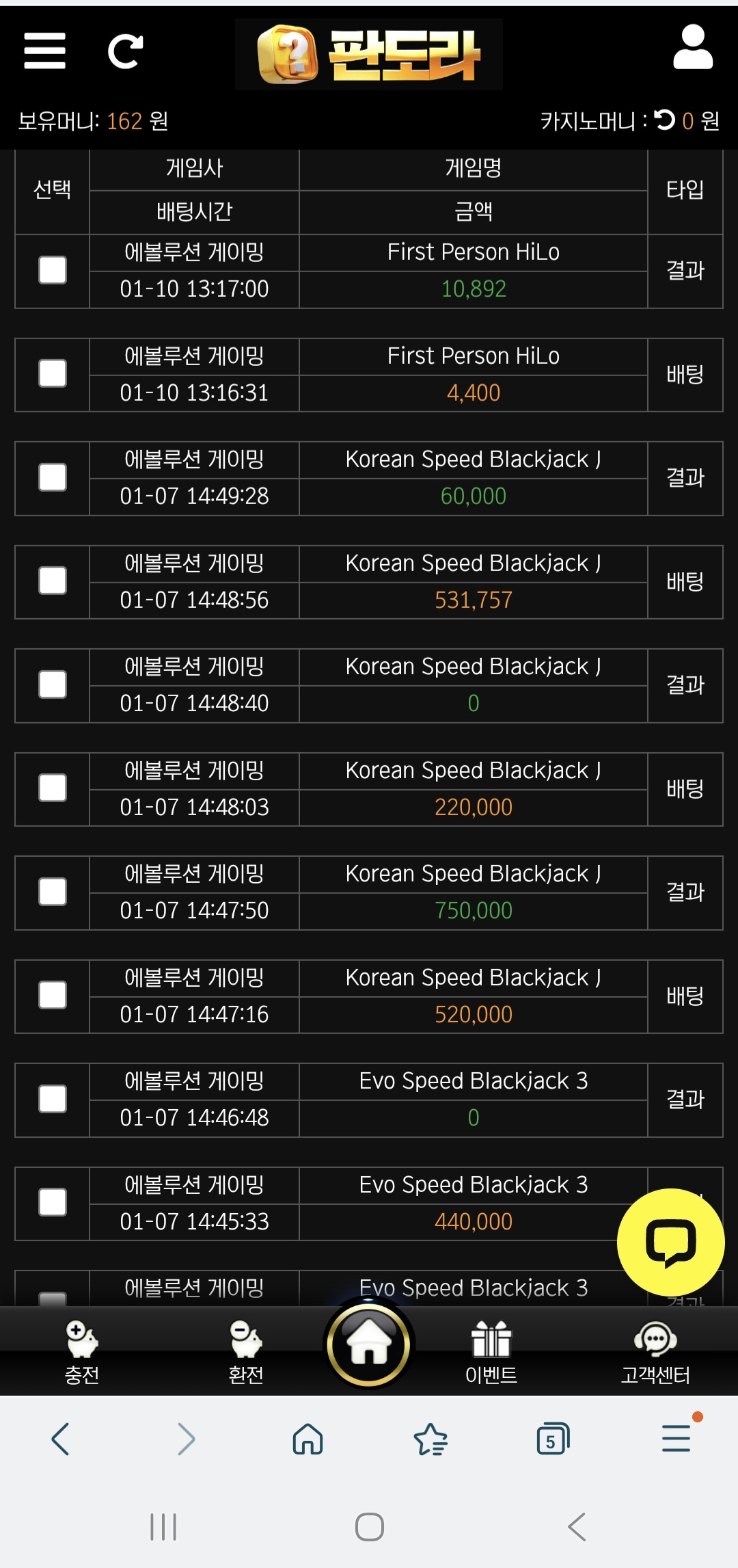 잭팟도 맞아봐서 환전신청까지 깔끔하게 잘됬었네요. 콤프도 잘쌓이고 매달 이벤트도