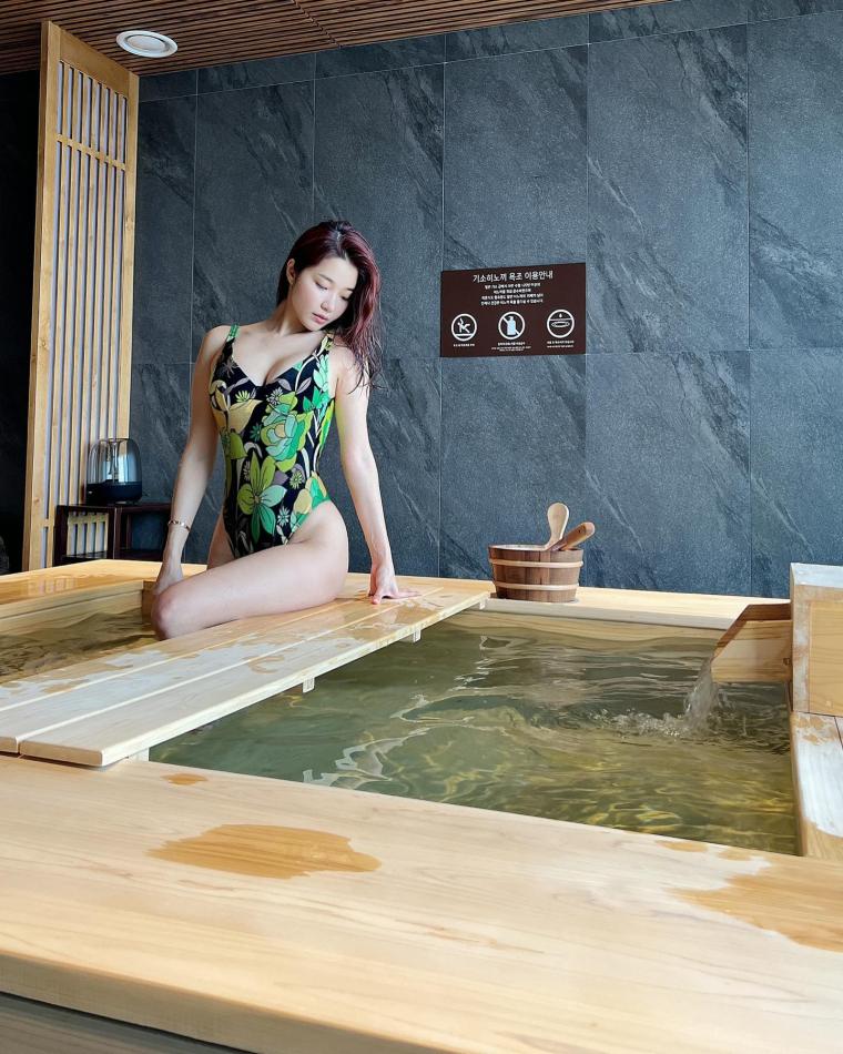 히노끼탕에서 수영복 입은 오또맘