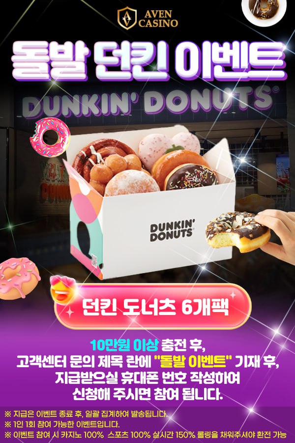 아벤 카지노 돌발 던킨도너츠 이벤트 2023-10-22 03:00:23
